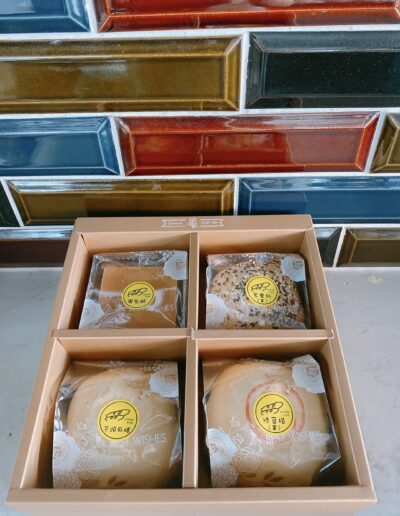 喜餅禮盒與你一起完成重要的人生里程;日子把你的誠意,以美味包裝。 適用場合不論是喜餅、彌月、收涎小餅盒或是畢業送禮,任何你希望能傳達心意的場合,日子幫你傳遞。形式與價格可根據內容物製作長條盒型,單層方形禮盒,雙層方形大禮盒。我們會根據需求討論後,以不同的禮盒與內容物進行報價。內容物選擇我們希望每個禮盒都能特別且充滿心意,內容物採客訂中式漢餅、西式蛋糕或餅乾,皆可混搭。訂購須知喜餅請提早一個月與師傅討論,其他禮盒需提前一周預定,如有特殊需求請電洽或到店洽詢;如有貼紙或小卡需求,需自行準備,我們裝盒時可協助您黏貼或放置。 立即洽詢